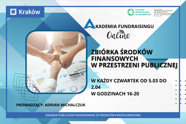 Ekspercka wiedza w zasięgu ręki Program poprowadzi Adrian Michalczuk – ceniony ekspert fundraisingu, psycholog społeczny i trener z wieloletnim doświadczeniem w zarządzaniu zbiórkami na skalę ogólnopolską (m.in. w UNICEF Polska oraz WWF). Dzięki formule online, uczestnicy będą mogli zdobywać wiedzę bez wychodzenia z domu, łącząc się w każdy czwartek od 5 marca do 2 kwietnia 2026 roku w godzinach 16:00–20:00.
